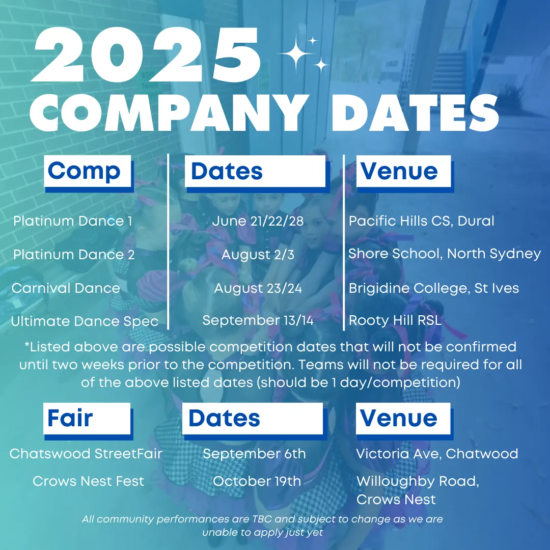 - It is an expectation that all dancers are at all competitions unless in extenuating unforeseen circumstances. If you are away or have a major event on, we will need to know a minimum of 4 weeks prior so that we can adequately prepare our dancers - last minute pull-outs are really detrimental to the team and may result in the team being unable to participate